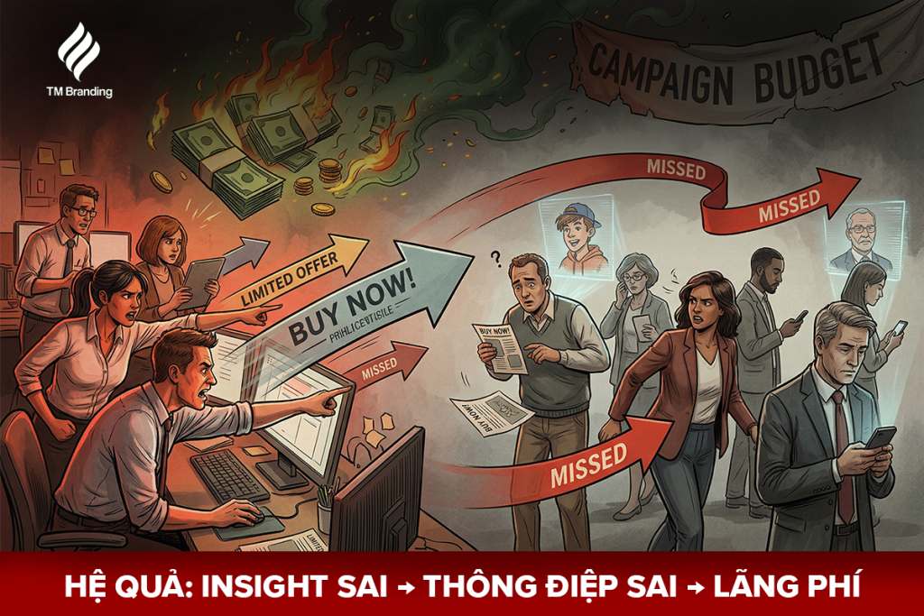 Khi không hiểu rõ khách hàng, doanh nghiệp sẽ đưa ra những thông điệp marketing không chạm đúng nhu cầu, gây ra sự đứt gãy trong giao tiếp thương hiệu. Điều này dẫn đến việc “đốt” ngân sách vào những kênh không mang lại chuyển đổi thực tế, làm giảm hiệu suất của toàn bộ hệ thống marketing tổng thể. Chiến lược có thể rất hoành tráng trên giấy tờ, nhưng khi triển khai lại trở nên vô định vì không dựa trên một hệ tiêu chuẩn chuyên gia về dữ liệu.