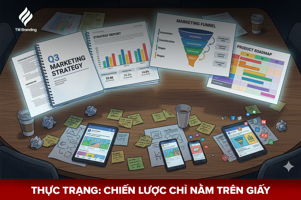 Nhiều doanh nghiệp sở hữu những bản kế hoạch hoành tráng nhưng kết quả cuối cùng lại không như mong đợi, dẫn đến tình trạng chiến lược marketing thất bại ngay từ khâu vận hành. Vấn đề thường không nằm ở tư duy định hướng mà nằm ở khoảng cách giữa “bản vẽ” và “thực tế triển khai”. Bài viết này sẽ phân tích hệ thống những nguyên nhân khiến chiến lược chỉ nằm trên giấy và giải pháp để chuyển hóa chúng thành hành động cụ thể.