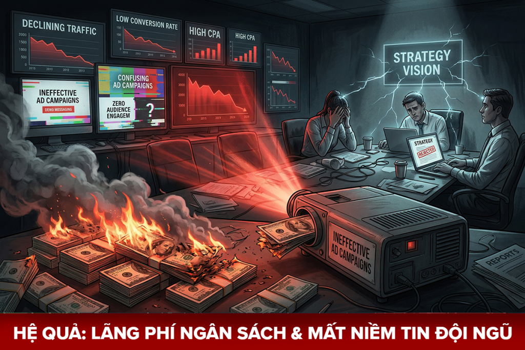 Nếu không sớm khắc phục, chiến lược của bạn sẽ mãi mãi chỉ là những tệp tài liệu lưu trữ. Hệ quả là ngân sách bị “đốt” vào những chiến dịch không mang lại traffic hay chuyển đổi thực tế. Quan trọng hơn, niềm tin của đội ngũ vào những định hướng dài hạn sẽ bị bào mòn khi họ không thấy được kết quả từ những nỗ lực triển khai hằng ngày.